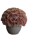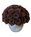 Double Dozen Premium Chocolate Roses arranged in a Cement Pot. Giving Luxe & Beauty. Available in Chocolate, Quicksand, or Matilda Roses, *Filler stems may need to be substituted with other variants of equivalent or greater value due to seasonal demand & availability if necessary.